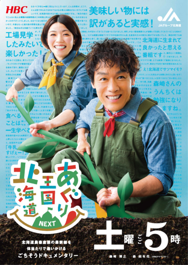JAグループ北海道は道内の皆さんに食料・農業・農村やJAへの理解を深めてもらおうと細やかな情報発信に力を入れています。その一つが地元の民放で毎週土曜の夕方に放送している「あぐり王国北海道NEXT」です。俳優の大泉洋さんや安田顕さんらが所属する人気の演劇ユニット「チームナックス」でリーダーを務める森崎博之さんを起用し、局のアナウンサーと共に生産現場を訪れ、見て、聞いて、体験して北海道農業を楽しく学ぶ機会につなげています。農業という仕事だけでなく生き方を教えてくれるのも特徴です。JAグループ北海道が単独で提供する30分間の番組は全国的にも珍しく、今年7月に15周年を迎えました。