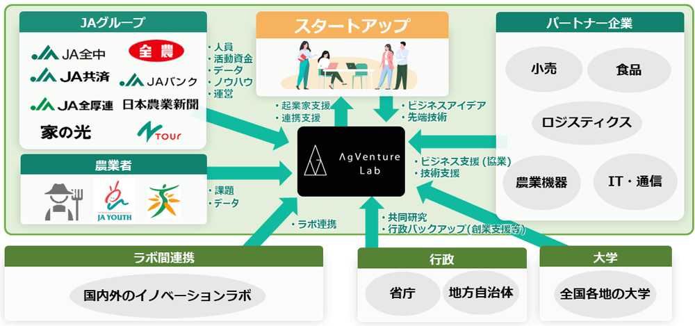 AgVenture Lab(アグベンチャーラボ=あぐラボ)は、JA全中、JA全農、JA共済連、農林中央金庫、家の光協会、日本農業新聞、JA全厚連、農協観光が運営するオープンイノベーションラボです。