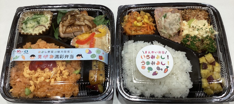 2024年度開発商品:「みよし野菜の魅力発見!えがお満彩弁当(左)」、