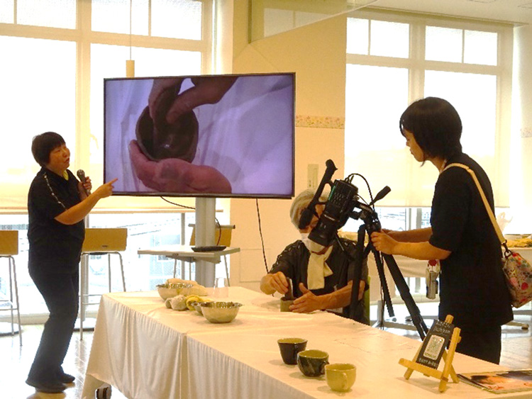 陶芸教室では、「講座の担当者も事前に陶芸を経験していれば受講生に説明するときの言葉の重みが増すと思うので、作品が完成する喜びや作業のポイントを知ってもらいながら打ち合わせがしたい」という岩澤さんの思いがあり、大貫さんも岩澤さん夫妻の陶芸教室で作品作りにチャレンジした上で開催している。今回の陶芸教室のチラシには、大貫さんがこのときに撮影した写真を活用した。